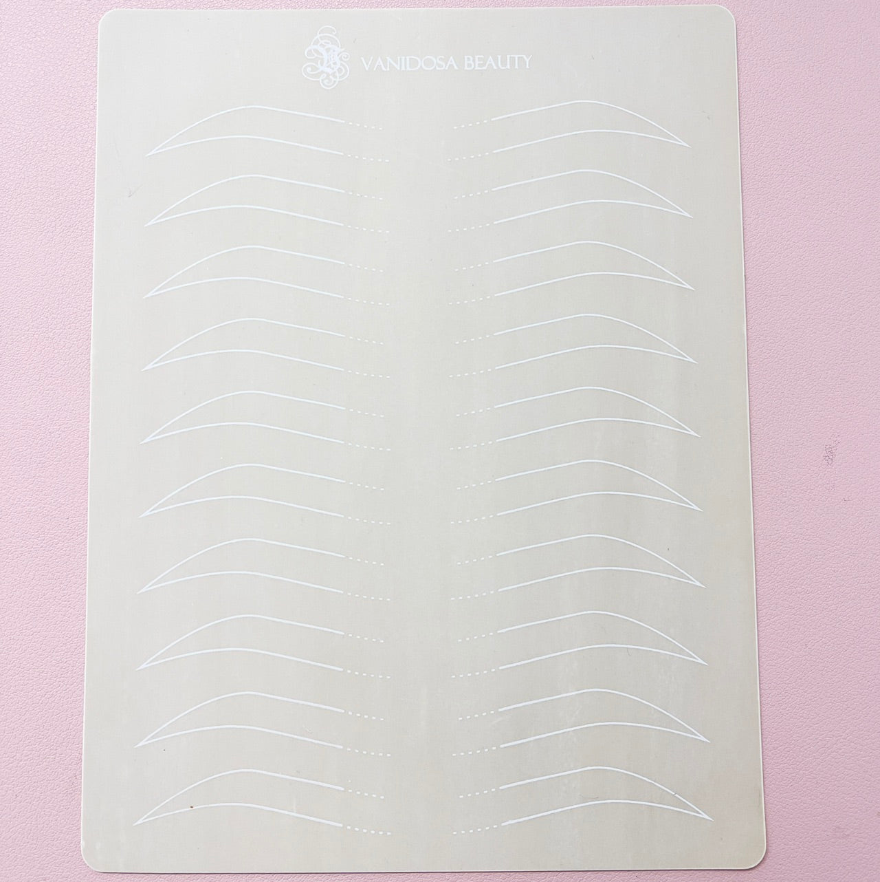 Our double sided synthetic skin is perfect to practice any brow permanent makeup procedure! Front side has the perfect eyebrow design. It also outlines the ombre section which helps you create that perfect transition. The back side has rectangles and triangles to practice you pendulum movements.